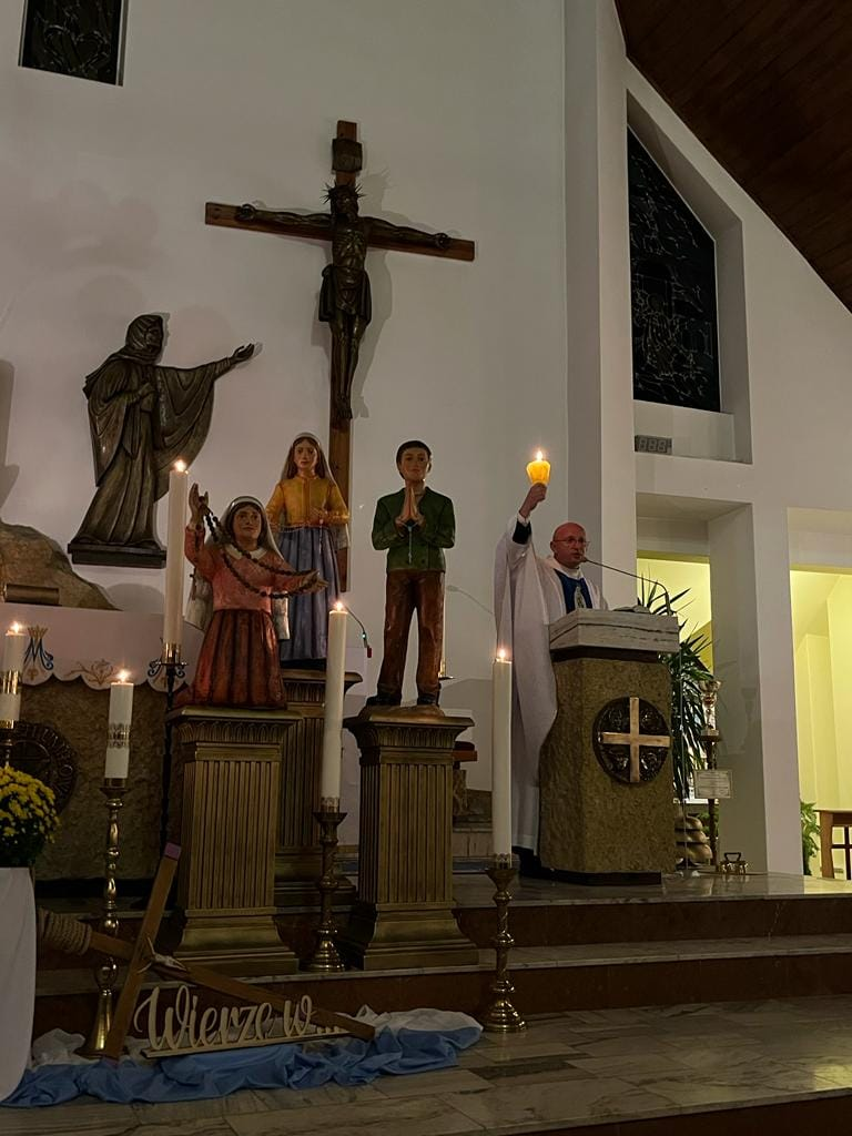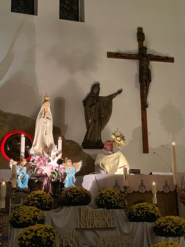 W październikowy wieczór odprawiliśmy już ostatnie w tym roku nabożeństwo fatimskie. Z różańcem w dłoniach i przy blasku świec powierzaliśmy intencje Kościoła i nasze Matce Najświętszej. Chociaż na tym ostatnim nabożeństwie rozważaliśmy bolesne tajemnice różańca, to jednak z wielką radością w poczuciu obecności Matki Bożej przy nas wyśpiewywaliśmy „Ave, Ave Maria…”.