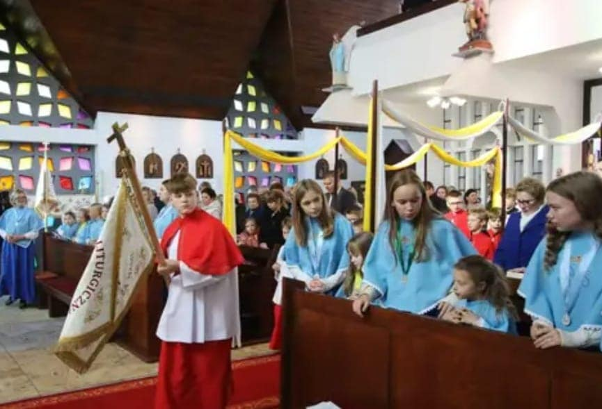 Sporo nas było na jubileuszowej liturgii. I licznie zgromadzeni parafianie, i strażacy, i górnicza orkiestra. Ksiądz Biskup Andrzej zaskoczony tym, że w tak niewielkiej parafii taka liczna służba liturgiczna. Ministrantów i marianek razem dokładnie 50 osób. Poniżej obszerna fotorelacja 🙂
