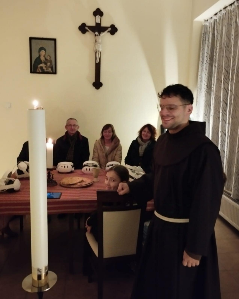 W sobotni wieczór, przed ostatnią niedzielą tegorocznego Adwentu, mogliśmy uczestniczyć w nietypowym wydarzeniu. Ojciec Francesco Baldeli z Góry św. Anny przyjechał do nas z audiowizualnym sprzętem, pozwalającym nam na chwilę znaleźć się wraz z Jezusem i Apostołami w Wieczerniku na Ostatniej Wieczerzy. W tym czasie, jak każdej soboty, trwała Adoracja Najświętszego Sakramentu, a dwóch kapłanów posługiwało w konfesjonale.