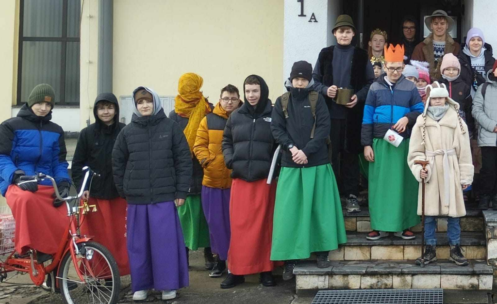 Kolędowanie ministrantów i marianek stało się już naszą tradycją. Czas pandemii zmienił formę chodzenia po kolędzie. Obostrzenia dawno przeminęły, a nam pozostał zwyczaj kolędowania ulicami naszej parafii. Nasi kolędnicy nie wchodzą do domów, tylko mieszkańcy z nich wychodzą i nie puszczają naszej służby liturgicznej z pustymi torbami. Również w tym roku było czym się podzielić, a i w skarbonce trochę się uzbierało. Dziękujemy wszystkim za ofiarność, a panu Robertowi za ufundowanie pizzy dla każdego.