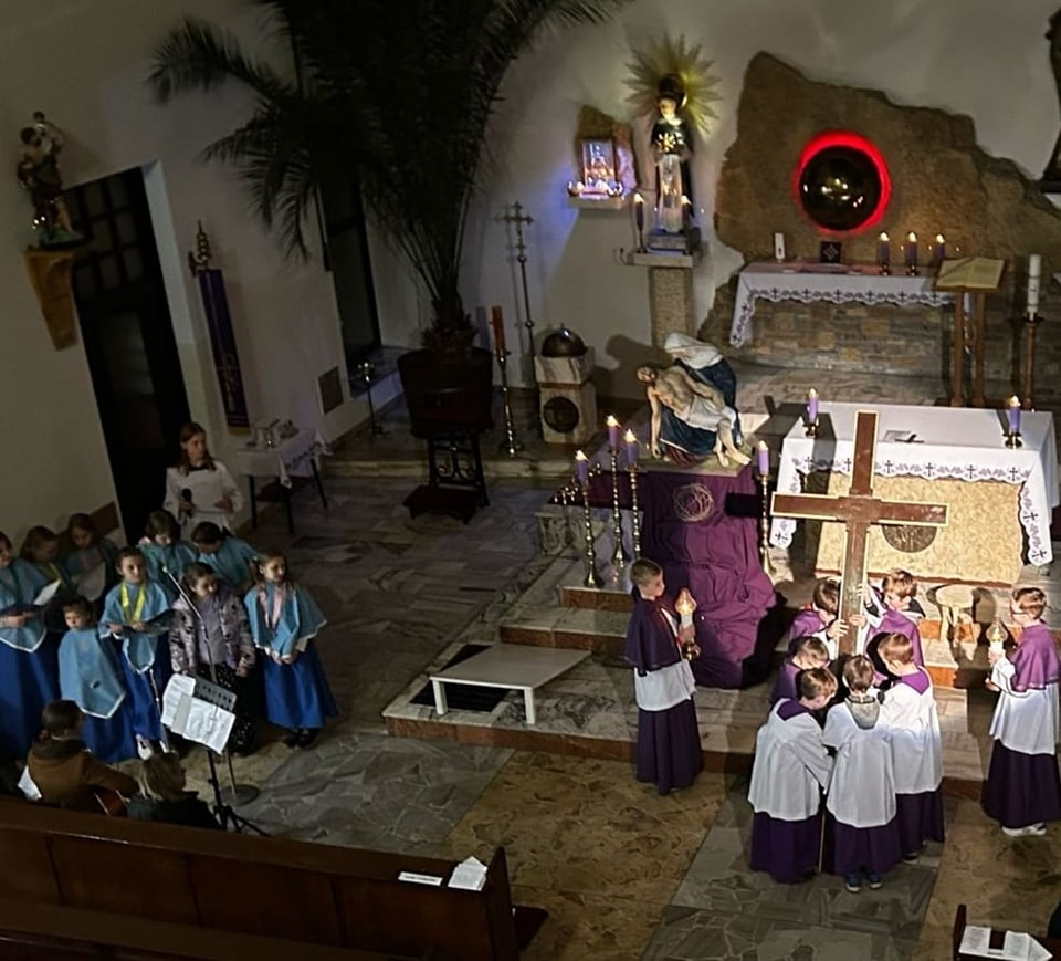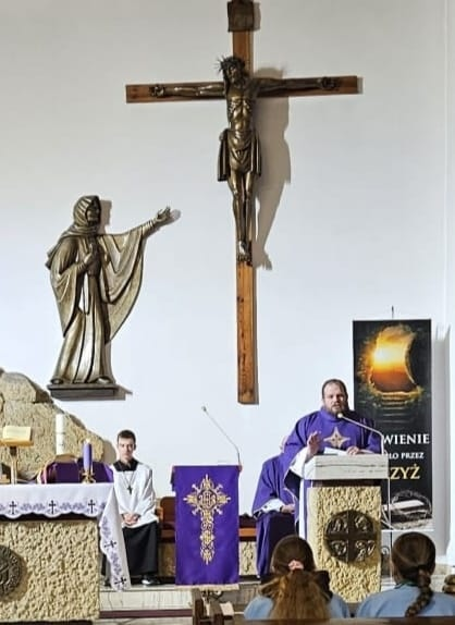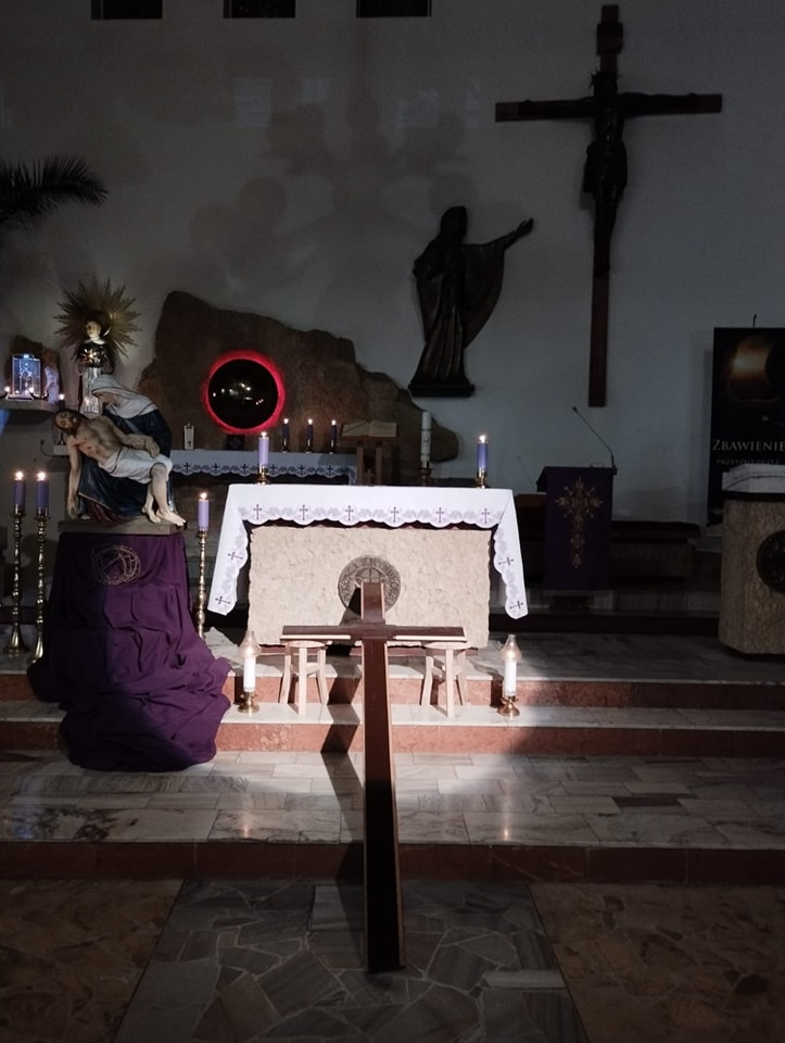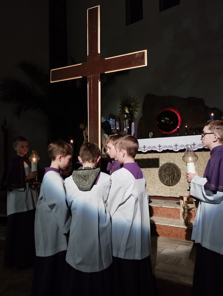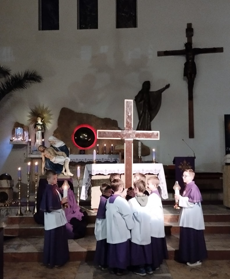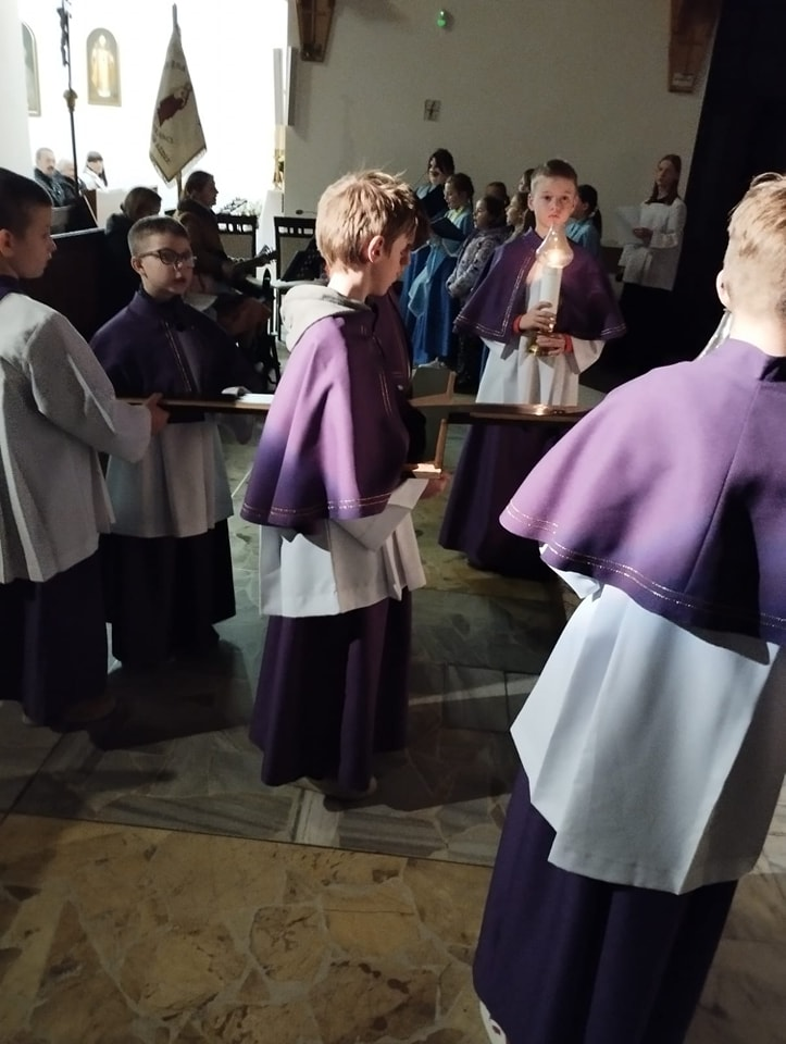 We wtorek po Mszy św. z kolejną rekolekcyjną nauką, adorowaliśmy krzyż naszego Pana Jezusa. Nasza młodsza młodzież przygotowała rozważania i śpiewy do medytacji przy przyniesionym przez nich krzyżu. Dziękujemy!