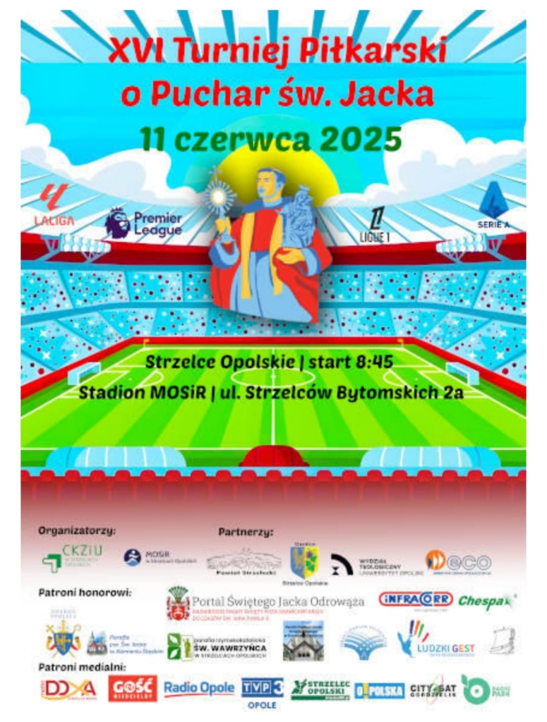 XVI Międzydiecezjalny Turniej Piłkarski o Puchar św. Jacka odbył się w Strzelcach Opolskich. Gratulujemy naszym ministrantom i razem z nimi cieszymy się pucharem i nagrodami za uzyskane czwarte miejsce w rozgrywkach 24 drużyn z różnych parafii nie tylko naszej diecezji.
